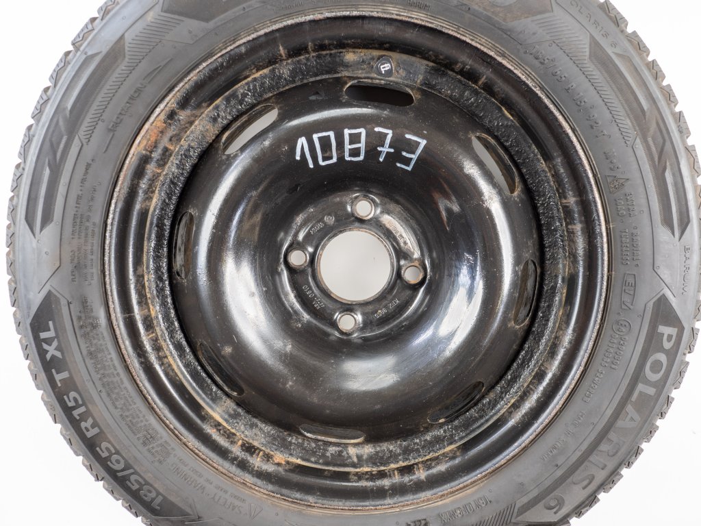 Použitá plechová sada kol 15" - Zimní pneu 185/65R15 značky Barum a vzorkem cca 8,1 mm