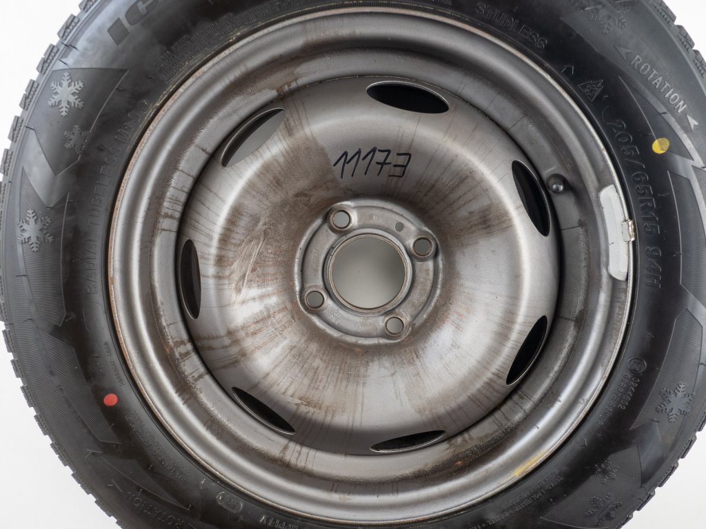 Použitá plechová sada kol 15" - Zimní pneu 205/65R15 značky Sailun a vzorkem cca 7,4 mm