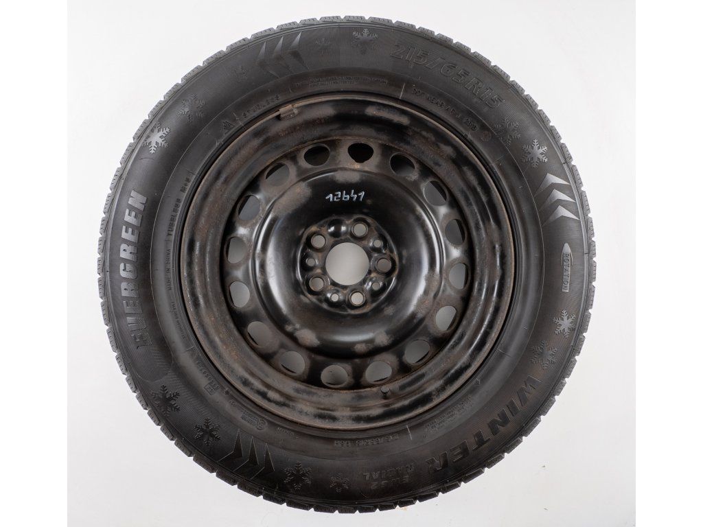 Použitá plechová sada kol 15" - Zimní pneu 215/65R15 značky Evergreen a vzorkem cca 6,3 mm