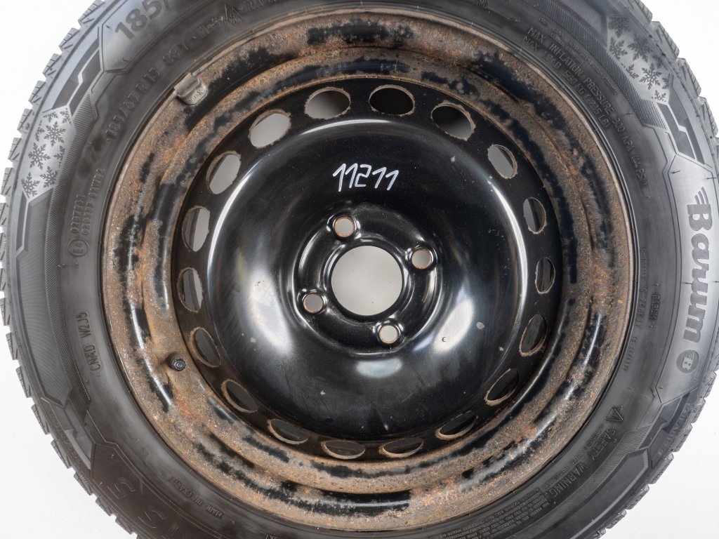 Použitá plechová sada kol 15" - Zimní pneu 185/65R15 značky Barum a vzorkem cca 7,4 mm