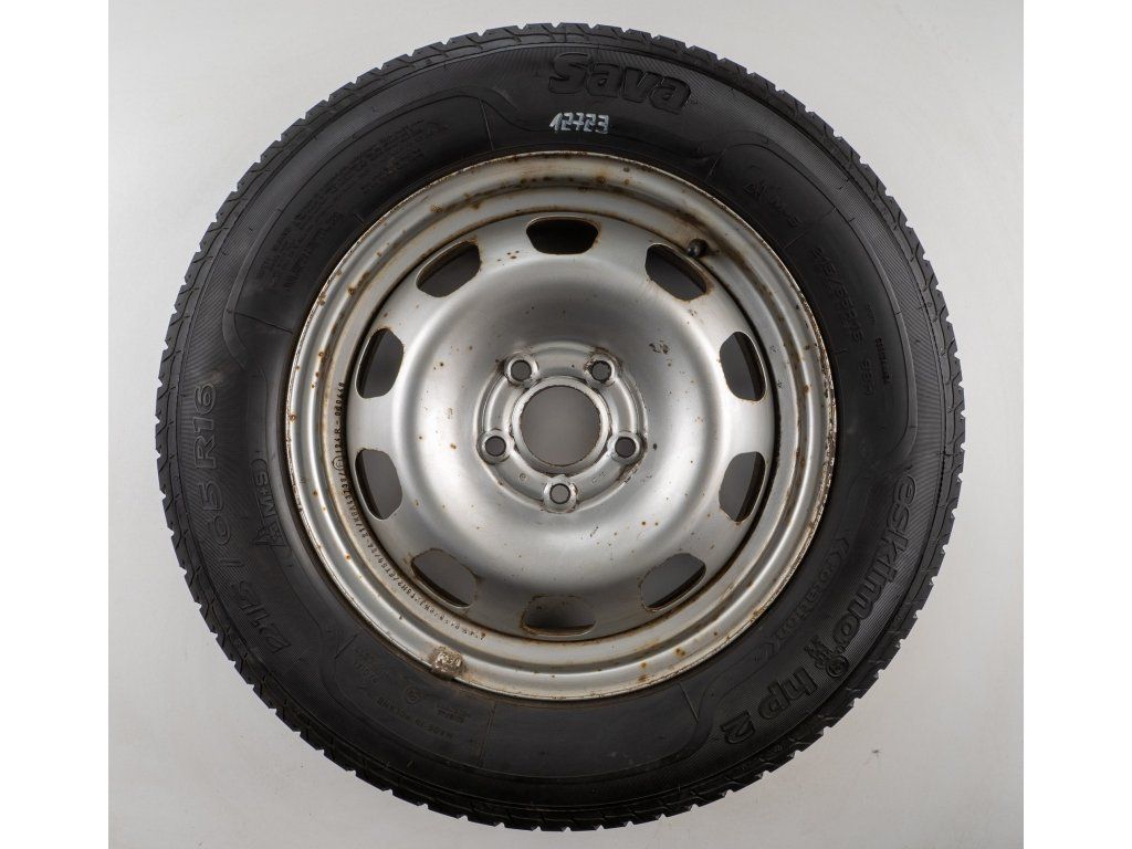 Použitá plechová sada kol 16" - Zimní pneu 215/65R16 značky Sava a vzorkem cca 5,2 mm