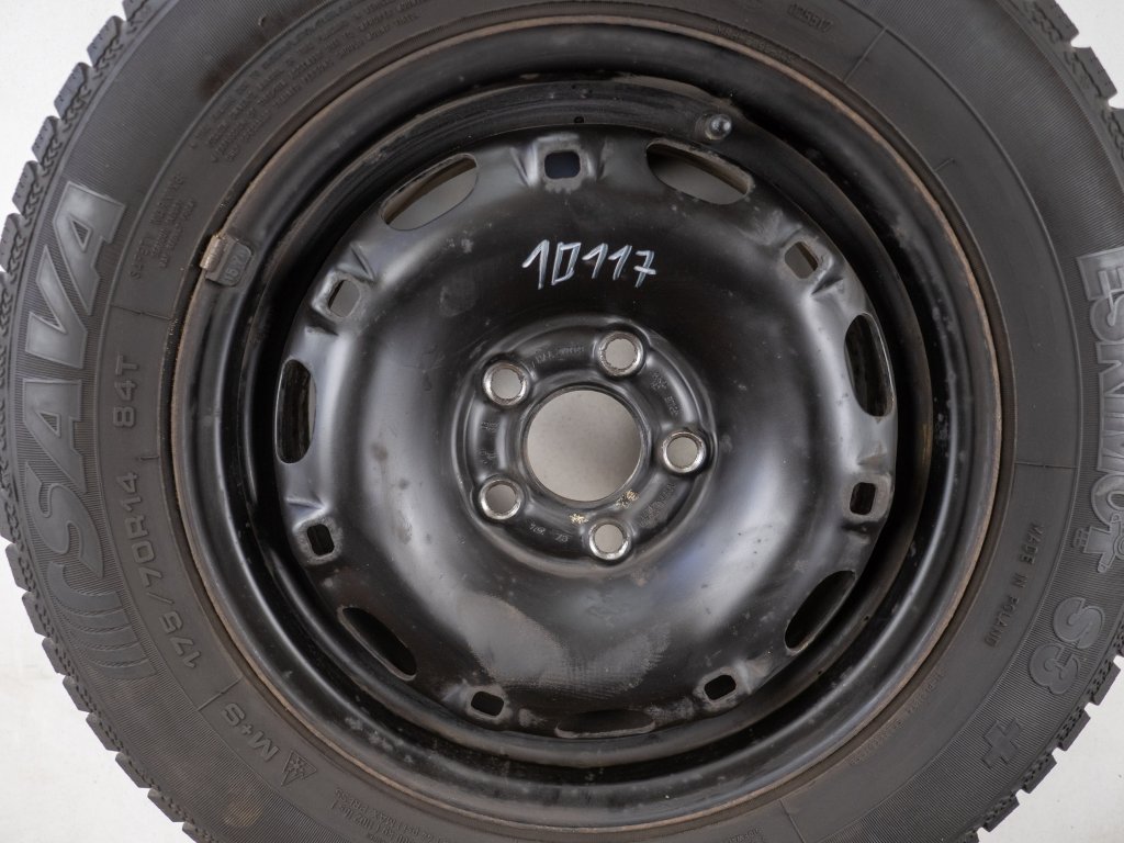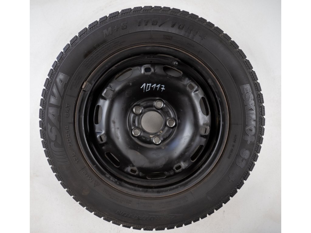 Použitá plechová sada kol 14" - Zimní pneu 175/70R14 značky Sava a vzorkem cca 4,4 mm