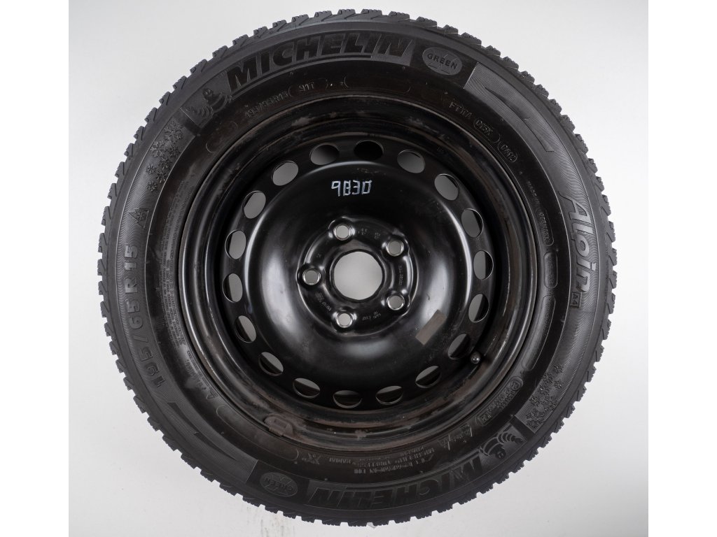 Použitá plechová sada kol 15" - Zimní pneu 195/65R15 značky Michelin a vzorkem cca 5,4 mm