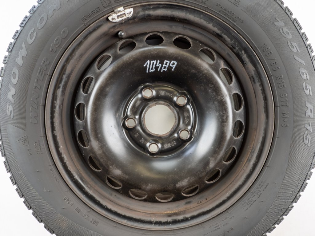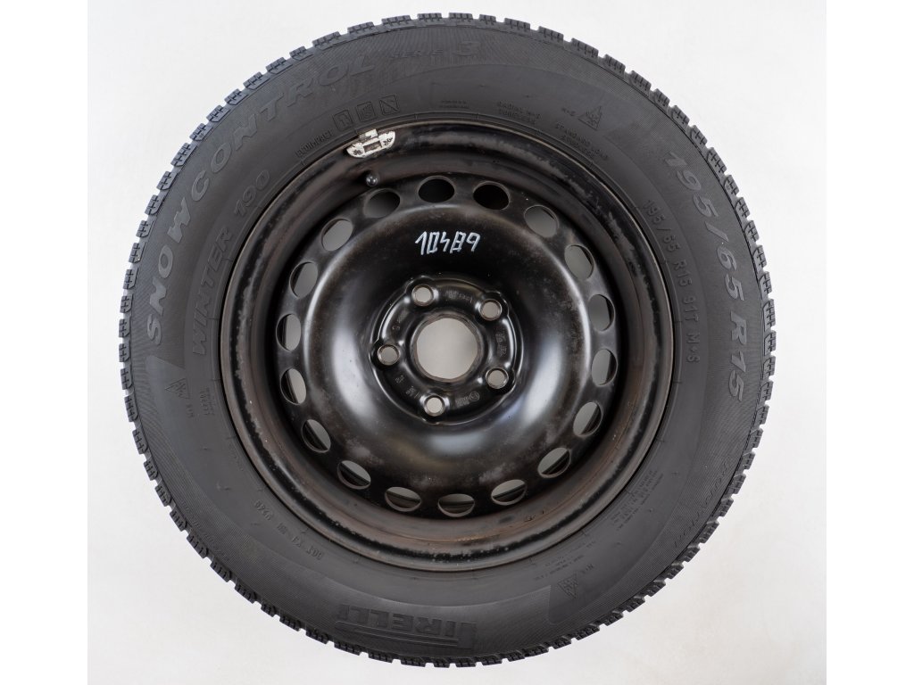 Použitá plechová sada kol 15" - Zimní pneu 195/65R15 značky Pirelli a vzorkem cca 5,5 mm