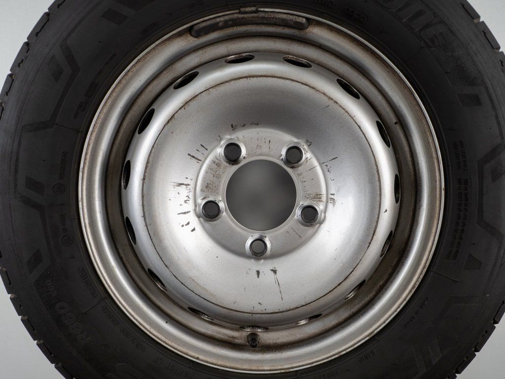 Použitá plechová sada kol 16" - Letní pneu 225/65R16C značky Bridgestone; Barum a vzorkem cca 6,7 mm