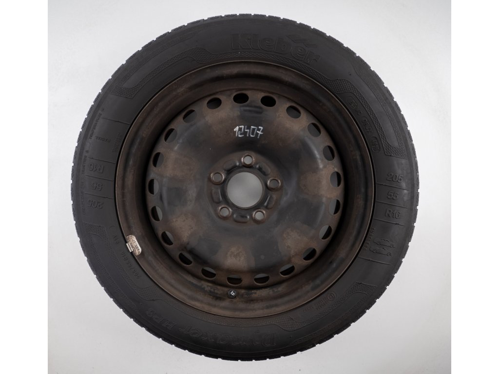 Použitá plechová sada kol 16" - Letní pneu 205/55R16 značky Kleber a vzorkem cca 6,3 mm