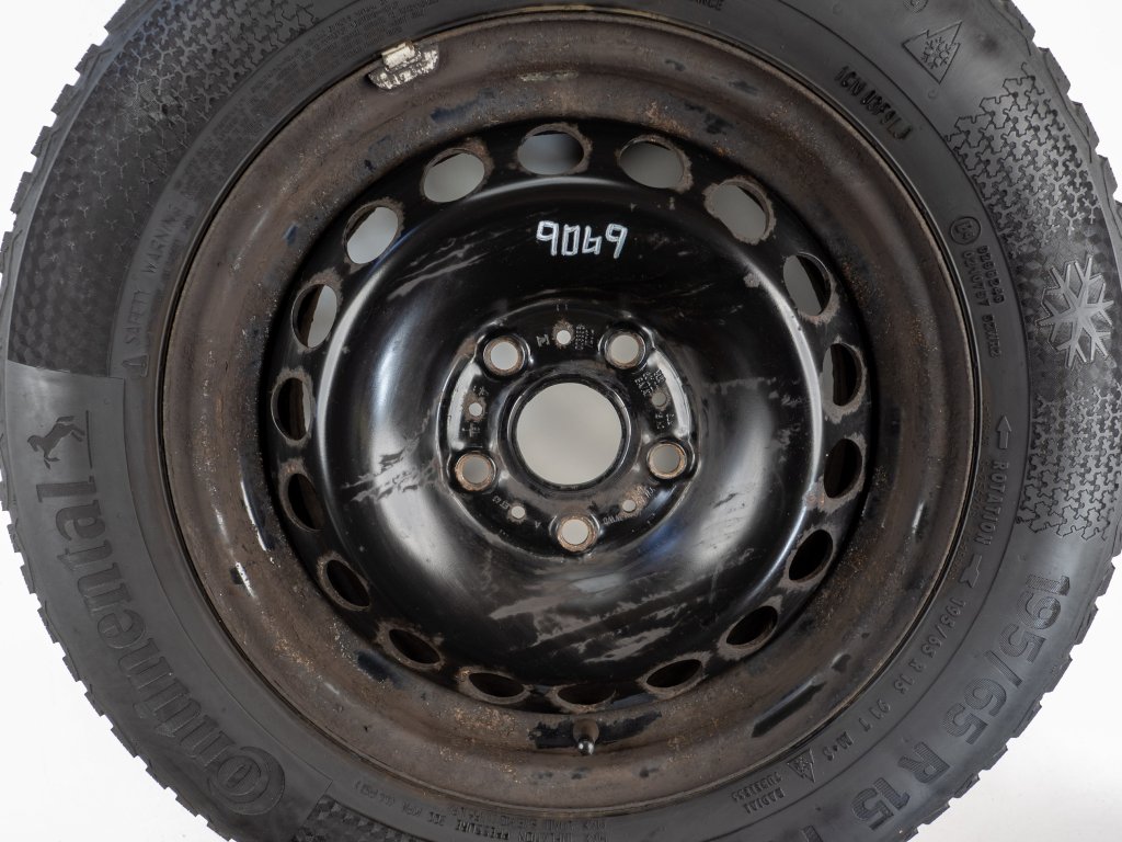 Použitá plechová sada kol 15" - Zimní pneu 195/65R15 značky Continental a vzorkem cca 5,3 mm