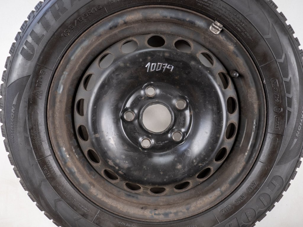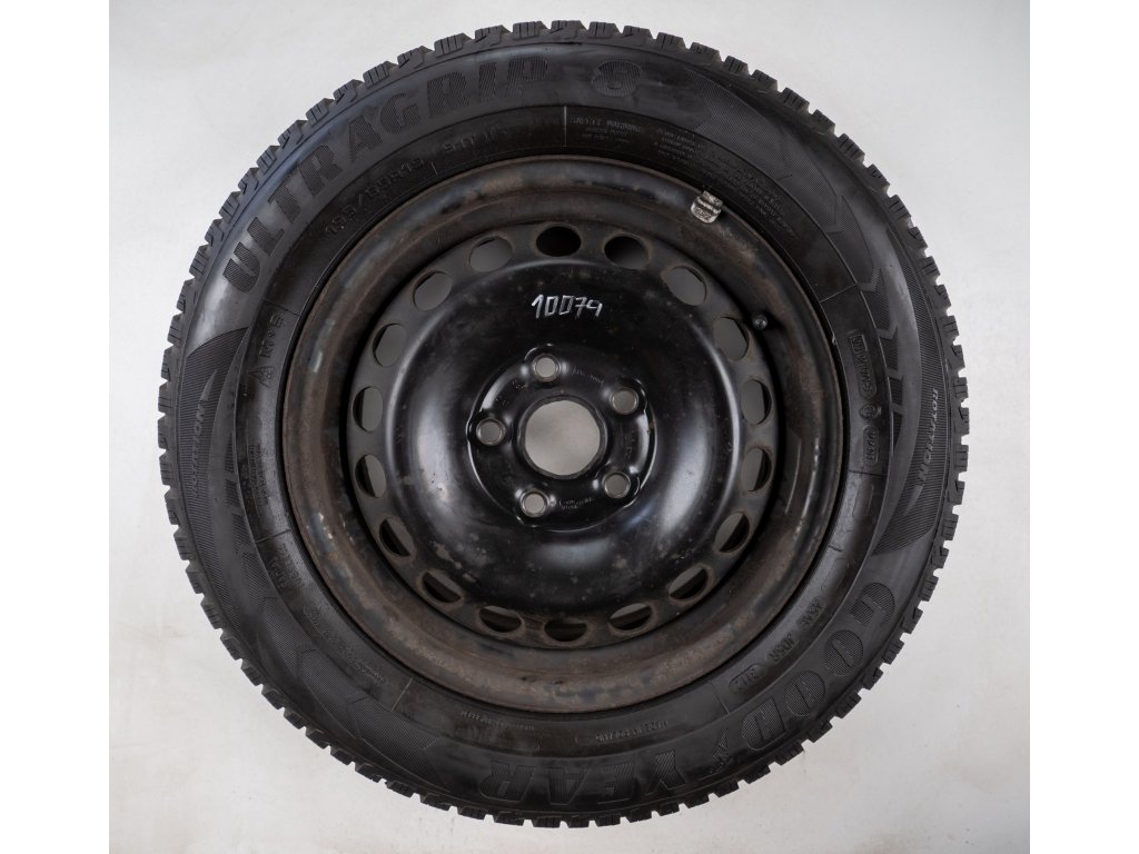 Použitá plechová sada kol 15" - Zimní pneu 195/65R15 značky Goodyear; Sebring a vzorkem cca 5,7 mm