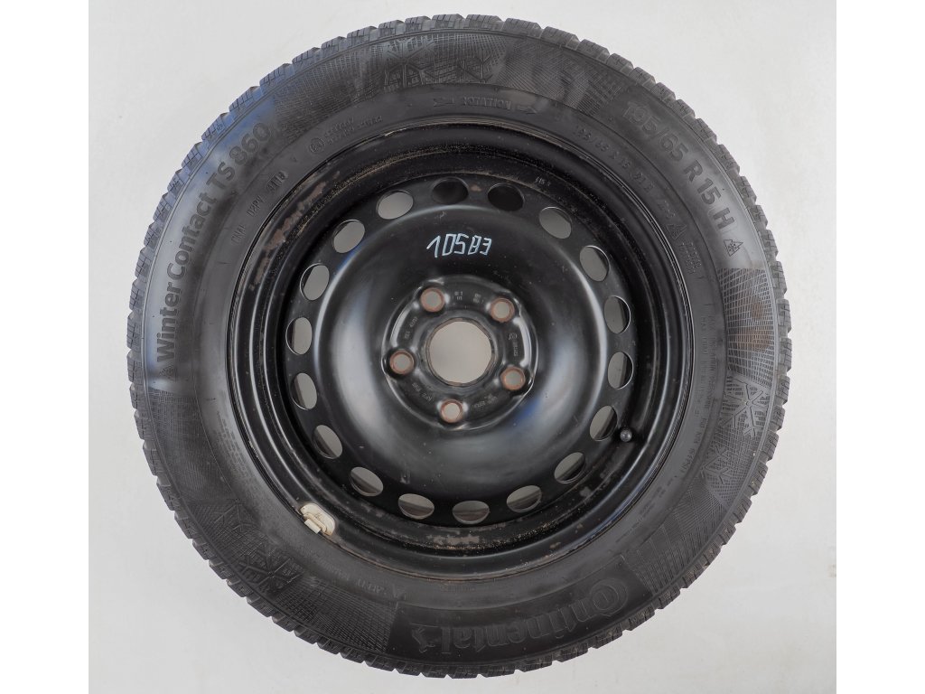 Použitá plechová sada kol 15" - Zimní pneu 195/65R15 značky Continental; Barum a vzorkem cca 5,3 mm