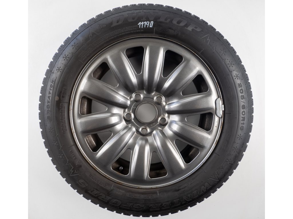 Použitá plechová sada kol 16" - Zimní pneu 205/60R16 značky Dunlop; Continental a vzorkem cca 5,1 mm