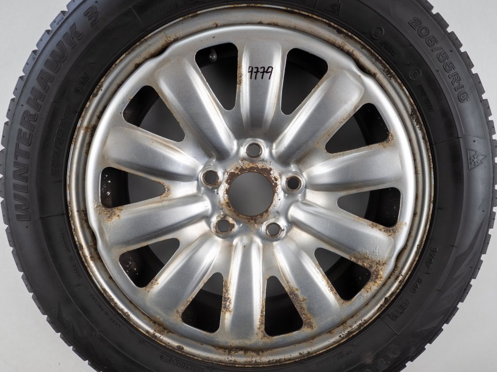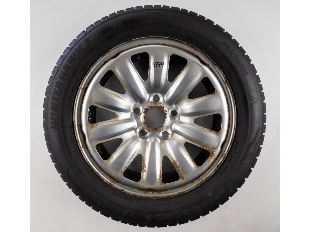 Použitá plechová sada kol 16" - Zimní pneu 205/55R16 značky Firestone a vzorkem cca 4,9 mm