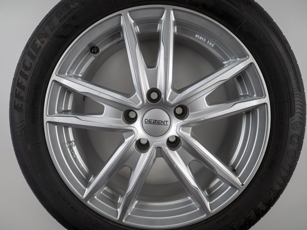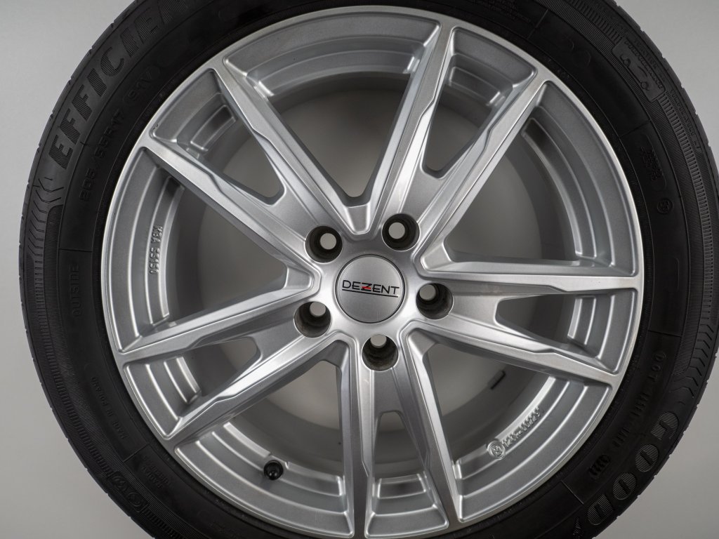 Použitá sada kol 17" - Letní pneu 205/55R17 značky Goodyear a vzorkem cca 5,7 mm