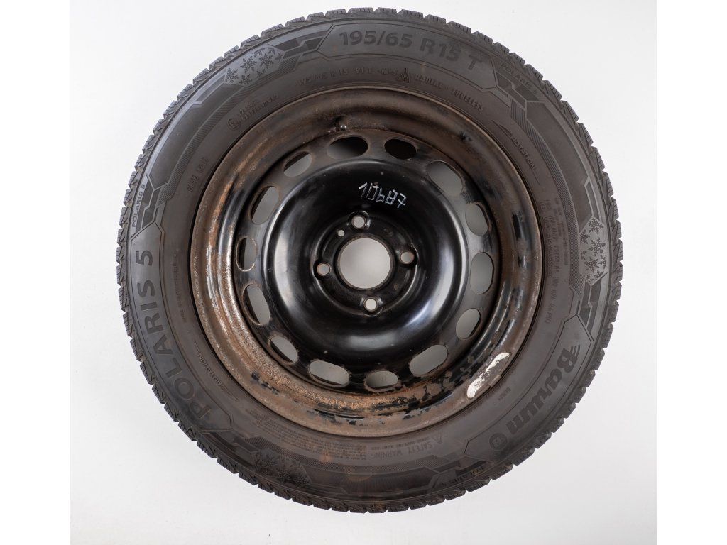 Použitá plechová sada kol 15" - Zimní pneu 195/65R15 značky Barum a vzorkem cca 7,8 mm