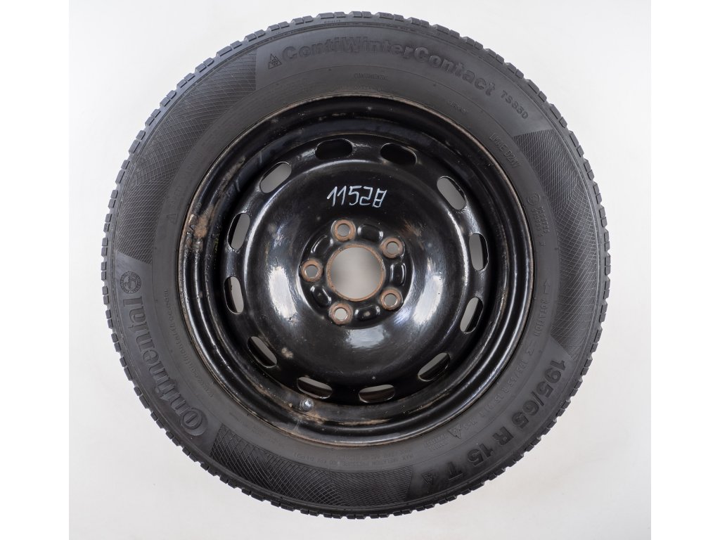 Použitá plechová sada kol 15" - Zimní pneu 195/65R15 značky Continental a vzorkem cca 4,5 mm