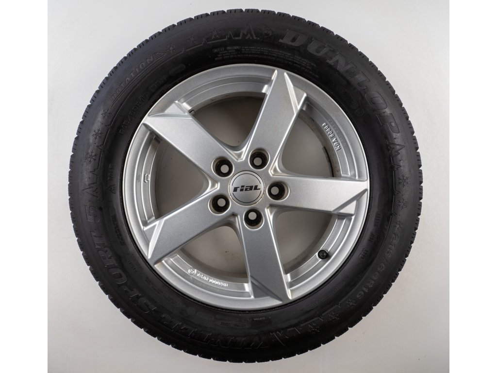 Použitá sada kol 16" - Zimní pneu 215/60R16 značky Dunlop a vzorkem cca 7,1 mm