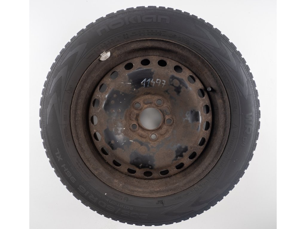 Použitá plechová sada kol 16" - Zimní pneu 205/60R16 značky Nokian a vzorkem cca 6,4 mm