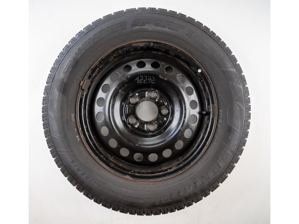 Použitá plechová sada kol 16" - Zimní pneu 215/65R16 značky Dunlop a vzorkem cca 7,2 mm