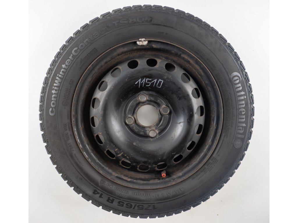 Použitá plechová sada kol 14" - Zimní pneu 175/65R14 značky Continental a vzorkem cca 5,7 mm