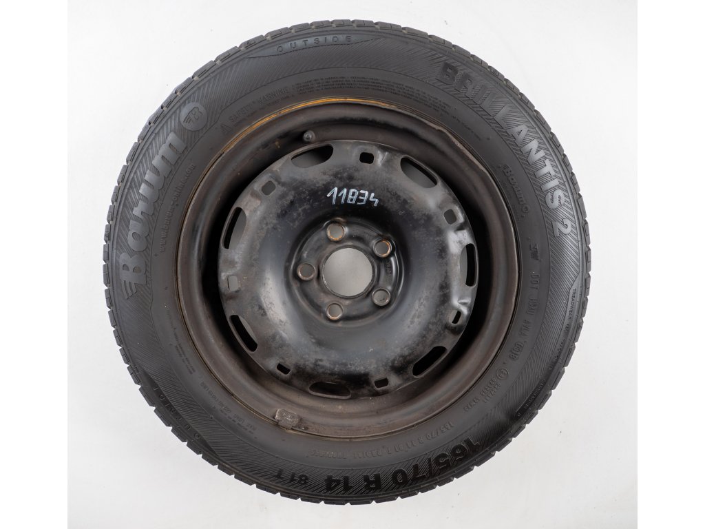Použitá plechová sada kol 14" - Letní pneu 165/70R14 značky Barum a vzorkem cca 5,7 mm
