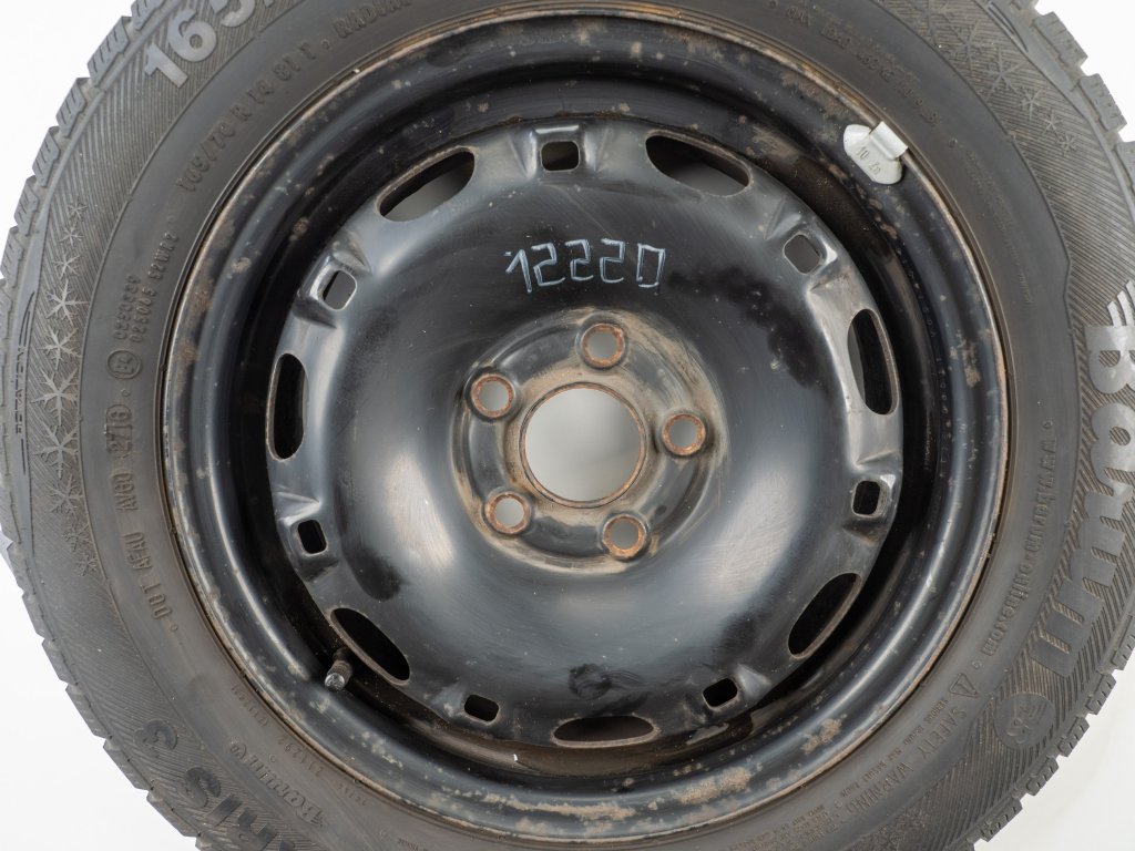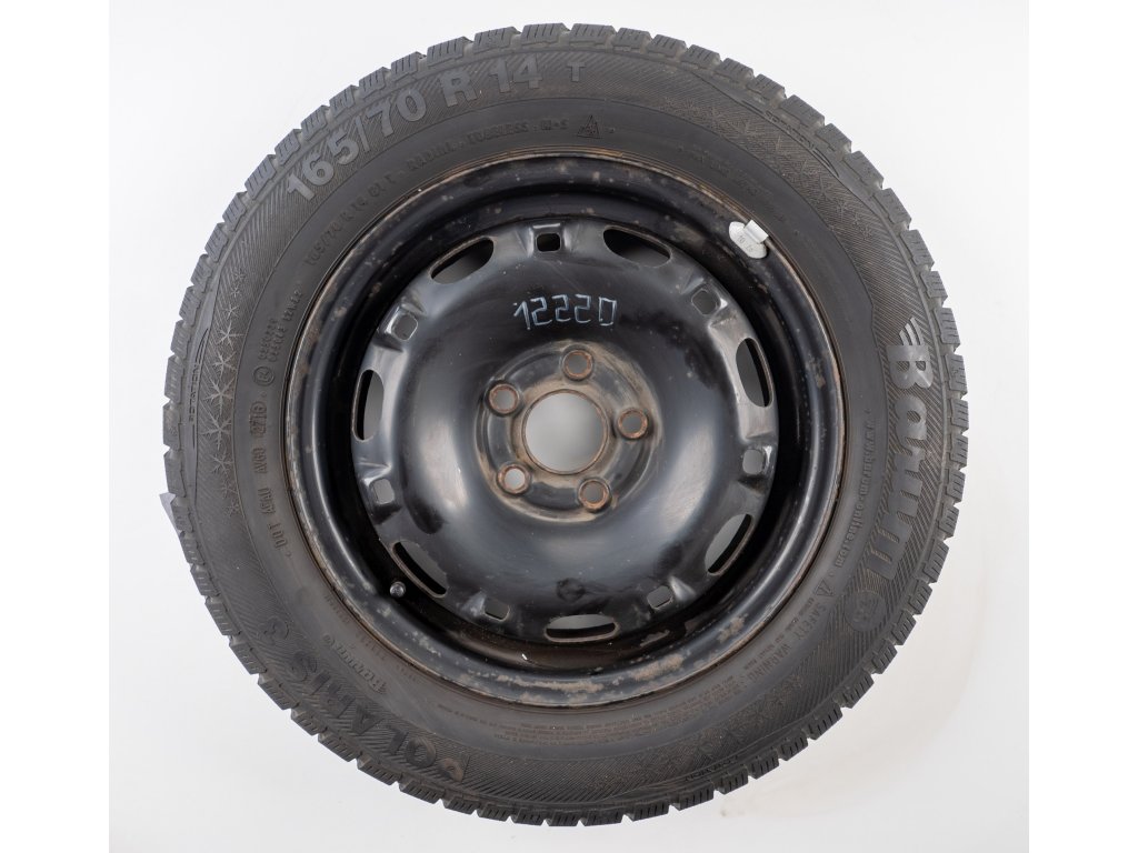 Použitá plechová sada kol 14" - Zimní pneu 165/70R14 značky Barum a vzorkem cca 6,6 mm