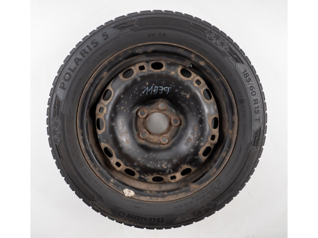Použitá plechová sada kol 15" - Zimní pneu 185/60R15 značky Barum a vzorkem cca 5,5 mm