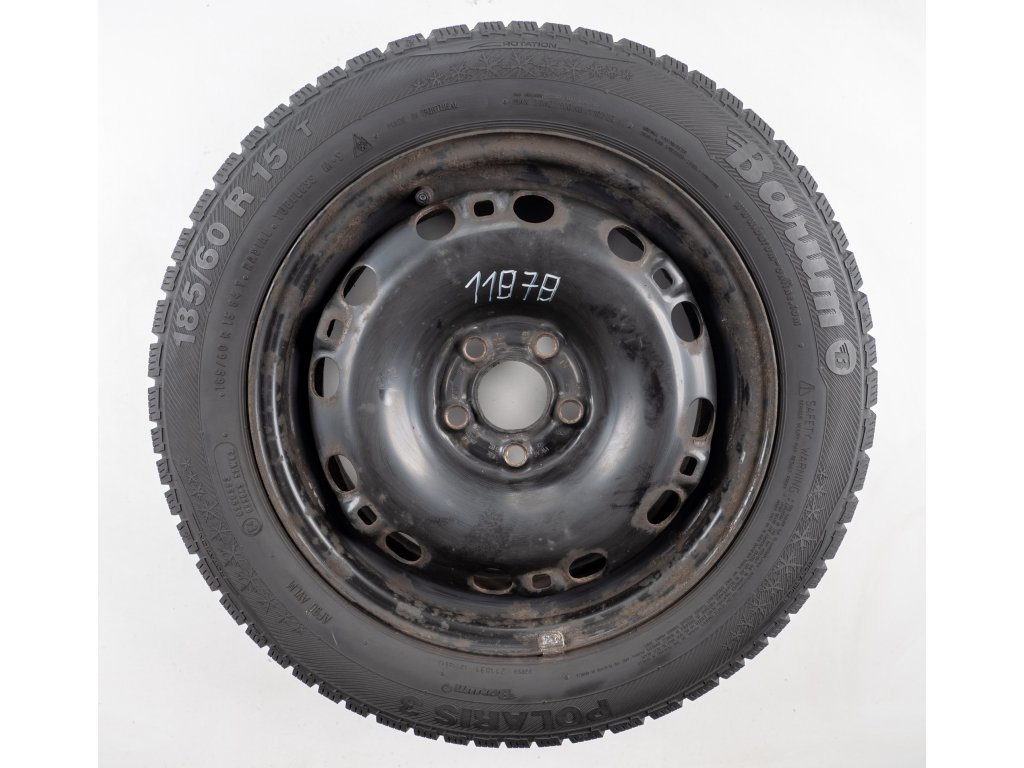 Použitá plechová sada kol 15" - Zimní pneu 185/60R15 značky Barum a vzorkem cca 6,6 mm