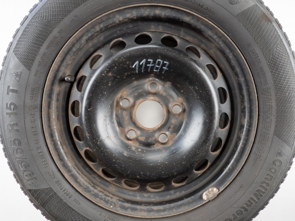 Použitá plechová sada kol 15" - Zimní pneu 195/65R15 značky Continental a vzorkem cca 4,8 mm