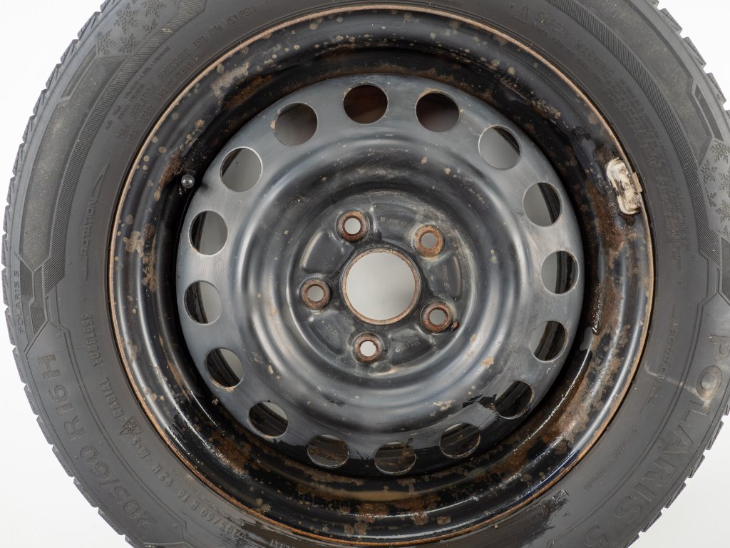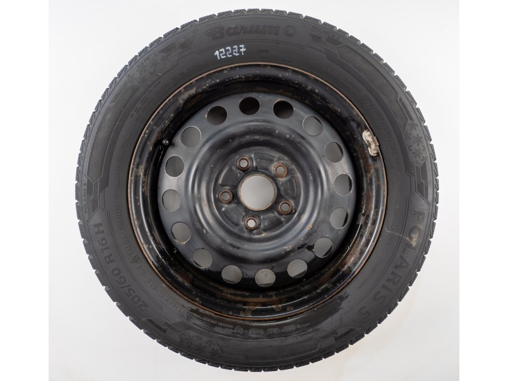 Použitá plechová sada kol 16" - Zimní pneu 205/60R16 značky Barum a vzorkem cca 6,6 mm
