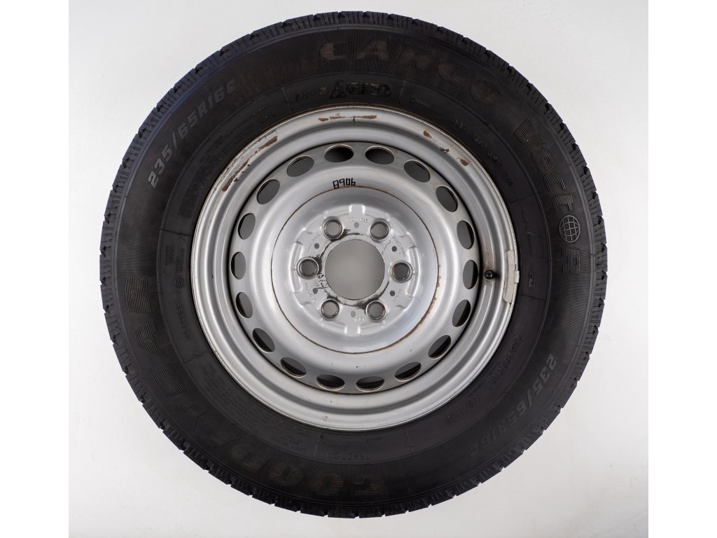 Použitá plechová sada kol 16" - Celoroční pneu 235/65R16C značky Goodyear a vzorkem cca 2,2 mm