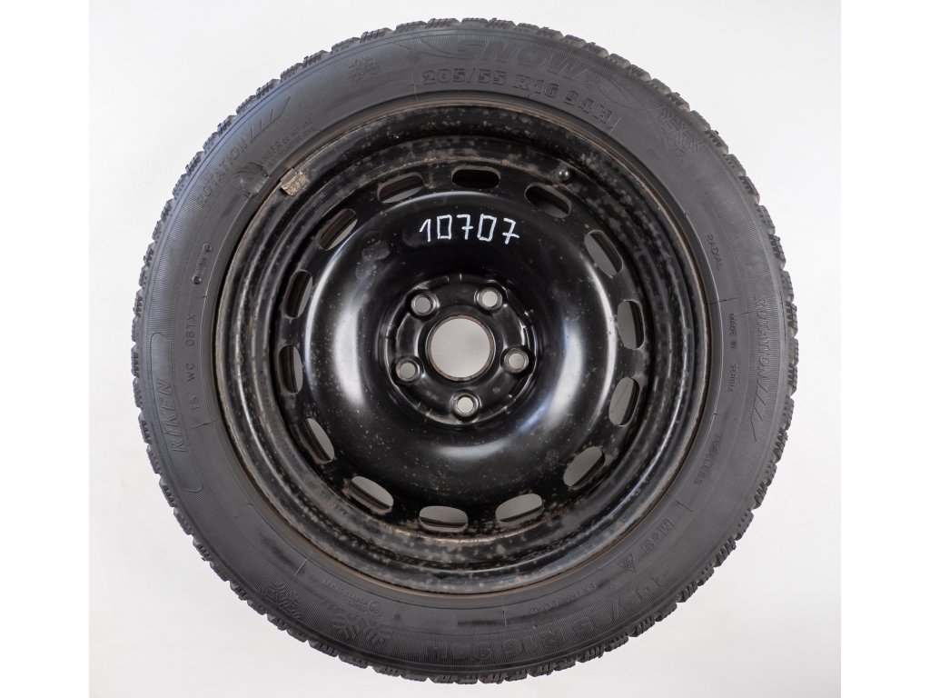 Použitá plechová sada kol 16" - Zimní pneu 205/55R16 značky Riken a vzorkem cca 6,3 mm