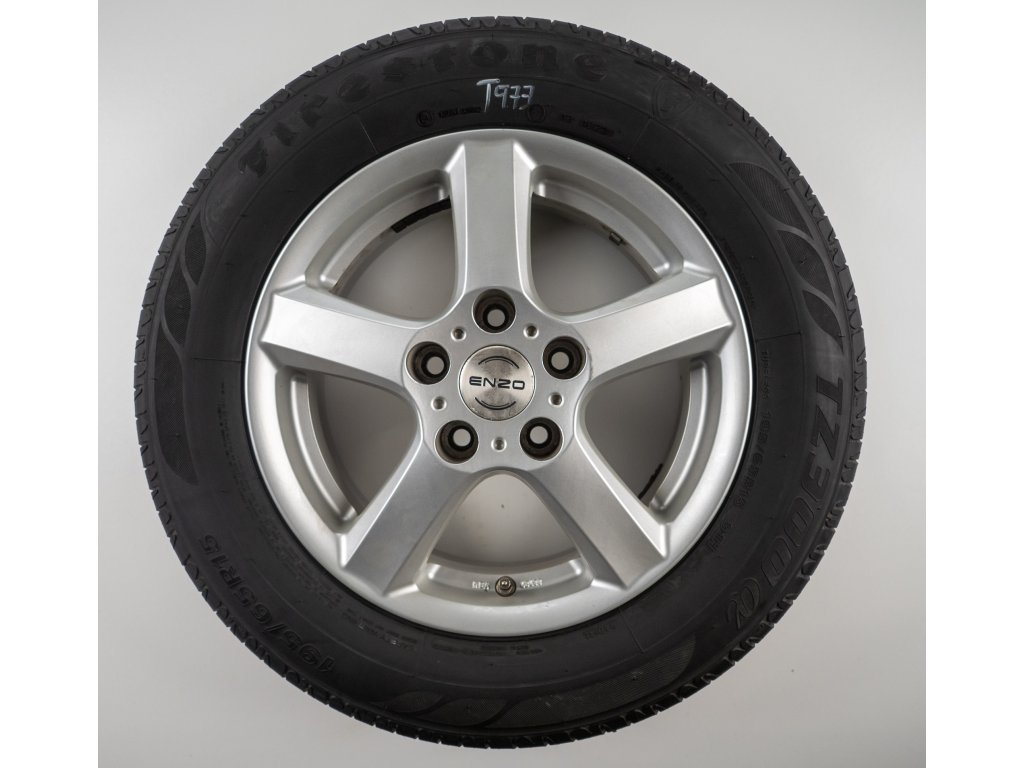 Použitá sada kol 15" - Letní pneu 195/65R15 značky Firestone a vzorkem cca 5,7 mm
