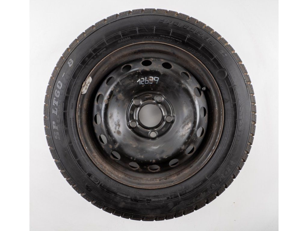 Použitá plechová sada kol 16" - Zimní pneu 205/65R16C značky Dunlop a vzorkem cca 9,2 mm