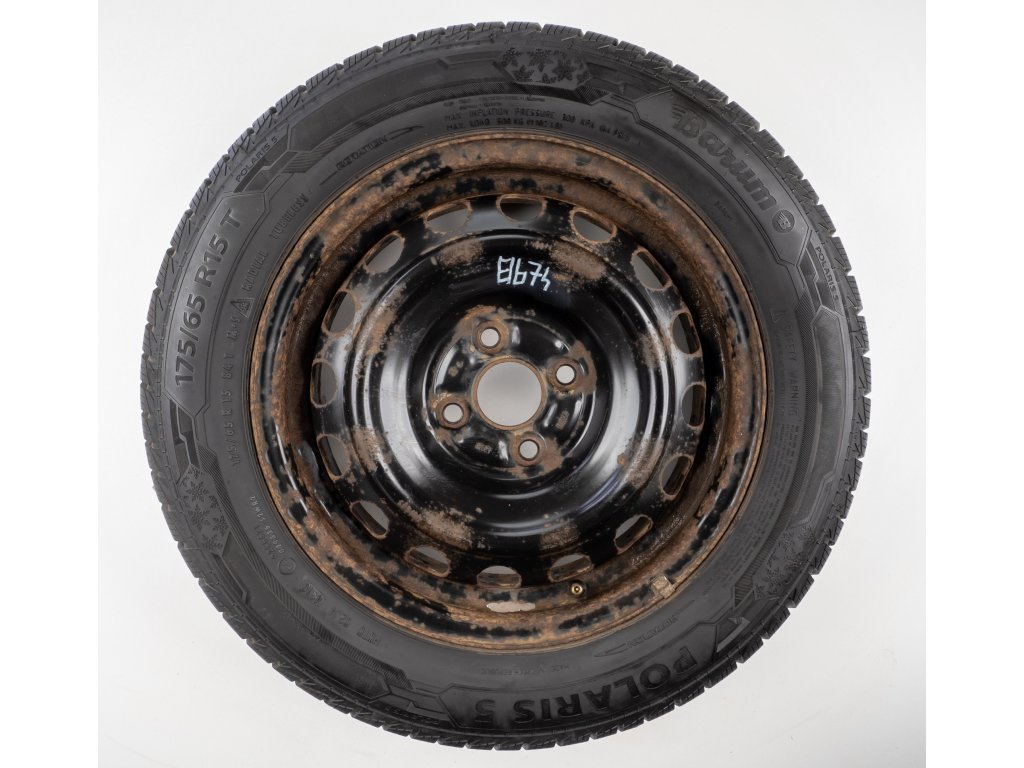 Použitá plechová sada kol 15" - Zimní pneu 175/65R15 značky Barum a vzorkem cca 5,9 mm